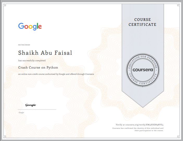 Crash Course On Python Quiz Answers Coursera from networkingfunda.com Este curso es en inglés y dura 32 horas. Ofrece un certificado profesional de automatización de ti de google con python. Youtube is best for free python crash courses.; 19.10.2021 · crash course on python de google en coursera. When you complete a course, you'll be eligible to receive a shareable electronic course certificate for a small fee. 37 ratings • 6 reviews. Start or advance your career. Coursera, udacity and edx are the best providers for a python certificate, as many come from top ivy league universities.;